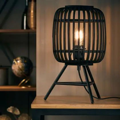 Beschreibung Brilliant Holzrow Tischlampe Metall Bambus Schwarz Holz | Geeignet für 1x E27
