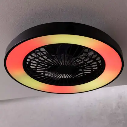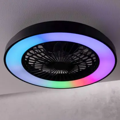Der Brilliant Mazzaro Ventilator Plastik Schwarz 36W 4700lm - 830-865 CCT+RGB | 485mm - Fernsteuerung Dimmbar integriert sich unauffällig in verschiedene Einrichtungsstile – von urbanem Minimalismus bis zu klassischen Wohnwelten. Die sauberen Linien und die zurückhaltende Farbgestaltung machen ihn zu einer langlebigen Designlösung.