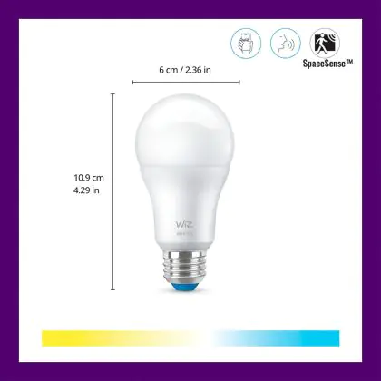 Die Doppelpack 2x WiZ Smart LED E27 Birne Matt 8W 806lm | Höchste Farbwiedergabe - Dimmbar - Ersatz Für 60W ist eine effiziente E27 LED-Lampe und der perfekte Ersatz für Ihre konventionellen 60W Lampen mit E27-Sockel. Zudem strahlt sie Licht in der Farbtemperatur aus und punktet durch eine lange Lebensdauer.