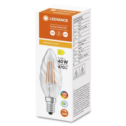 Die Ledvance Superior Classic LED E14 Fadenlampe Klar 3.4W 470lm - 940 Kaltweiß | Dimmbar - Höchste Farbwiedergabe ist eine effiziente E14 LED-Lampe mit Retrodesign und der perfekte Ersatz für Ihre konventionellen 40W Lampen mit E14. Zudem strahlt sie Licht in der Farbtemperatur 4000K - Kaltweiß aus und punktet durch eine lange Lebensdauer.