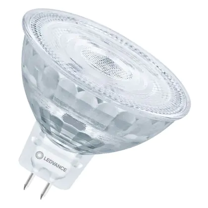 Die Ledvance Superior LED Reflektor GU5.3 MR16 8W 621lm 36D - 940 Kaltweiß | Höchste Farbwiedergabe - Dimmbar - Ersatz Für 50W ist eine effiziente GU5.3 LED-Lampe und der perfekte Ersatz für Ihre konventionelle Halogenlampe mit 50W und einem GU5.3-Sockel, bei dem die beiden Stifte einen Abstand von 5,3 mm zueinander haben. Die Abkürzung MR16 zeigt Ihnen, dass der Reflektor einen Durchmesser von 5 cm hat. Zudem strahlt das Produkt Licht in der Farbtemperatur 4000K - Kaltweiß aus und punktet durch eine lange Lebensdauer.