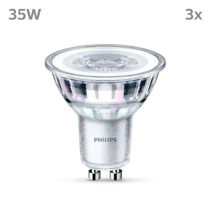 Die Lumeneffizienz des GU10 LED-Strahlers von Philips liegt bei lm/W. Herkömmliche GU10-Strahler hingegen besitzen ein Lumen zu Watt-Verhältnis von 10-15 lm/W. Somit sparen Sie allerhand Energiekosten. Hinzu kommt die lange Lebensdauer des GU10 LED-Strahlers von 15000. Somit spendet er deutlich länger Licht als ein herkömmlicher Halogenstrahler, der mit nur rund 3000 Stunden daherkommt. Das spart Ihnen zusätzlich Austausch- und Wartungskosten.