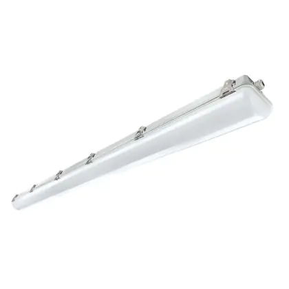 Die Noxion LED-Feuchtraumleuchte der Reihe Pro ist 150 cm lang. Sie ersetzt eine herkömmliche Leuchte à 58 Watt und verbraucht dabei selbst lediglich 33 Watt. Diese LED hat eine tageslichtweiße Farbtemperatur (6.500 Kelvin). Sie ist IP66- und IK08-klassifiziert und daher auch in Außenbereichen anwendbar. Dank der praktischen Durchgangsverdrahtung können Sie ganz einfach mehrere Leuchten miteinander verbinden.