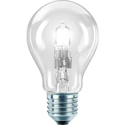 Philips EcoClassic A-Shape ist eine konventionelle geformte Halogenlampe. Sie ersetzt perfekt alte Halogenlampen der gleichen Form, während das Licht von gleicher Qualität oder besser ist. Die Lampen besitzen einen E27 Lampensockel, was die Installation vereinfacht. Die durchschnittliche Lebensdauer der Philips EcoClassic 28W E27 230V A55 CL beträgt 2000 Stunden.