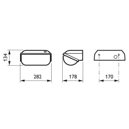 Die Leuchte hat ein Gehäuse in dezentem Schwarz. Es besteht aus ASA (Acrylnitril-Styrol-Acrylat-Copolymer), einem besonders robusten und auch witterungsbeständigen Material. Aus diesem Grund ist das Produkt auch als Außenbeleuchtung geeignet.