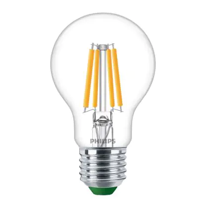 Die Philips MASTER LED Glühbirne Ultra Efficient E27 Birne Klar 2.3W 485lm - 827 Extra Warmweiß | Ersatz für 40W ist eine effiziente E27 LED-Lampe und der perfekte Ersatz für Ihre konventionellen 40W Lampen mit E27-Sockel. Zudem strahlt sie Licht in der Farbtemperatur 2700K - Extra Warmweiß aus und punktet durch eine lange Lebensdauer.